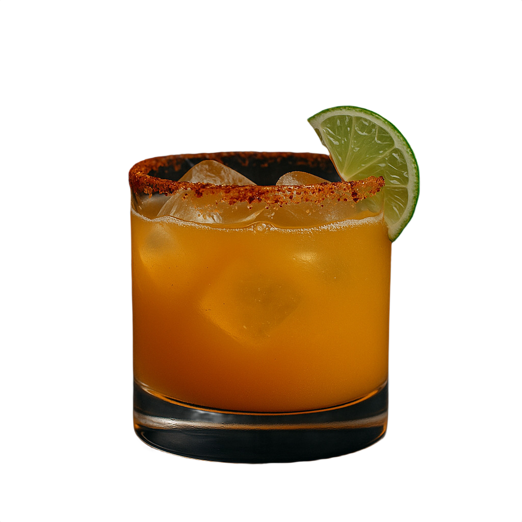 A vibrant twist on the classic margarita with tequila, Cointreau, and a tropical blend of passionfruit and mango. Sweetened with agave and brightened with fresh lime, all finished with a tantalizing Tajín rim for the perfect balance of sweet, tart, and spice. Served over ice, garnished with a lime wedge and a dash of Tajín.